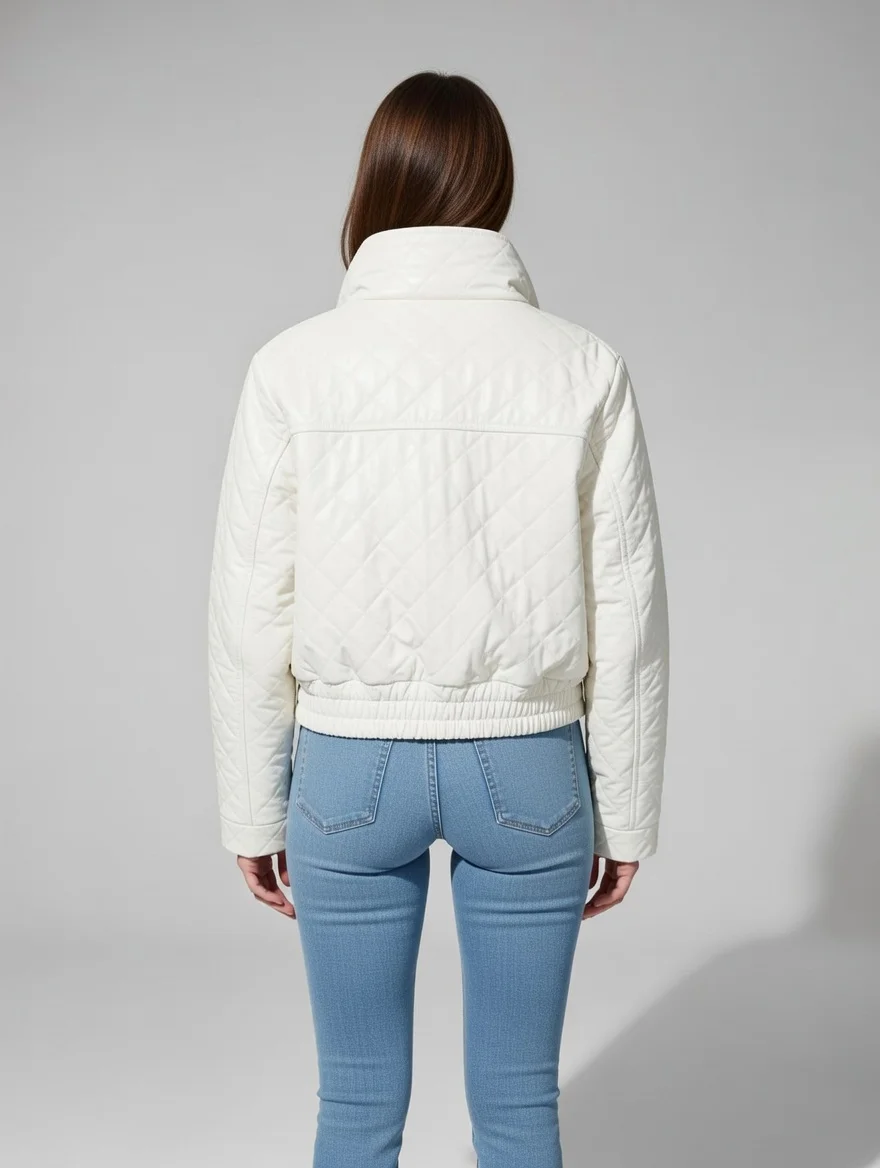 Add elegance to your wardrobe with this stylish Ladies Leather Jacket in Candy White color, featuring a modern boxed texture design that gives a premium and fashionable appearance. Crafted from high-quality leather material, this jacket offers a smooth finish with durability, making it perfect for both casual and semi-formal wear.