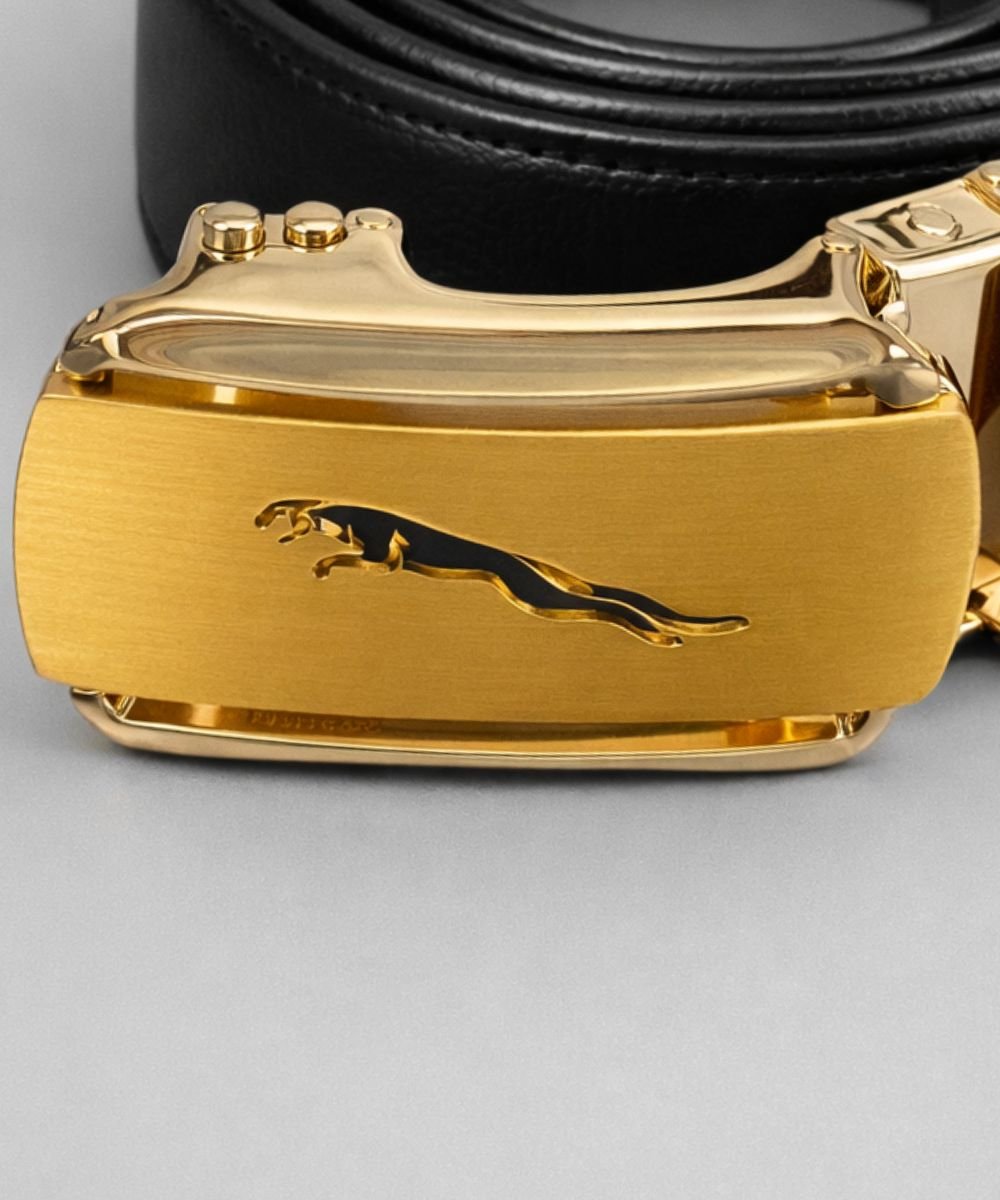 The bold gold-tone buckle features a sleek engraved jaguar emblem, symbolizing power and confidence. Designed with an advanced automatic locking mechanism, it provides a smooth, precise fit without visible holes — ensuring maximum comfort and a clean, sophisticated look.