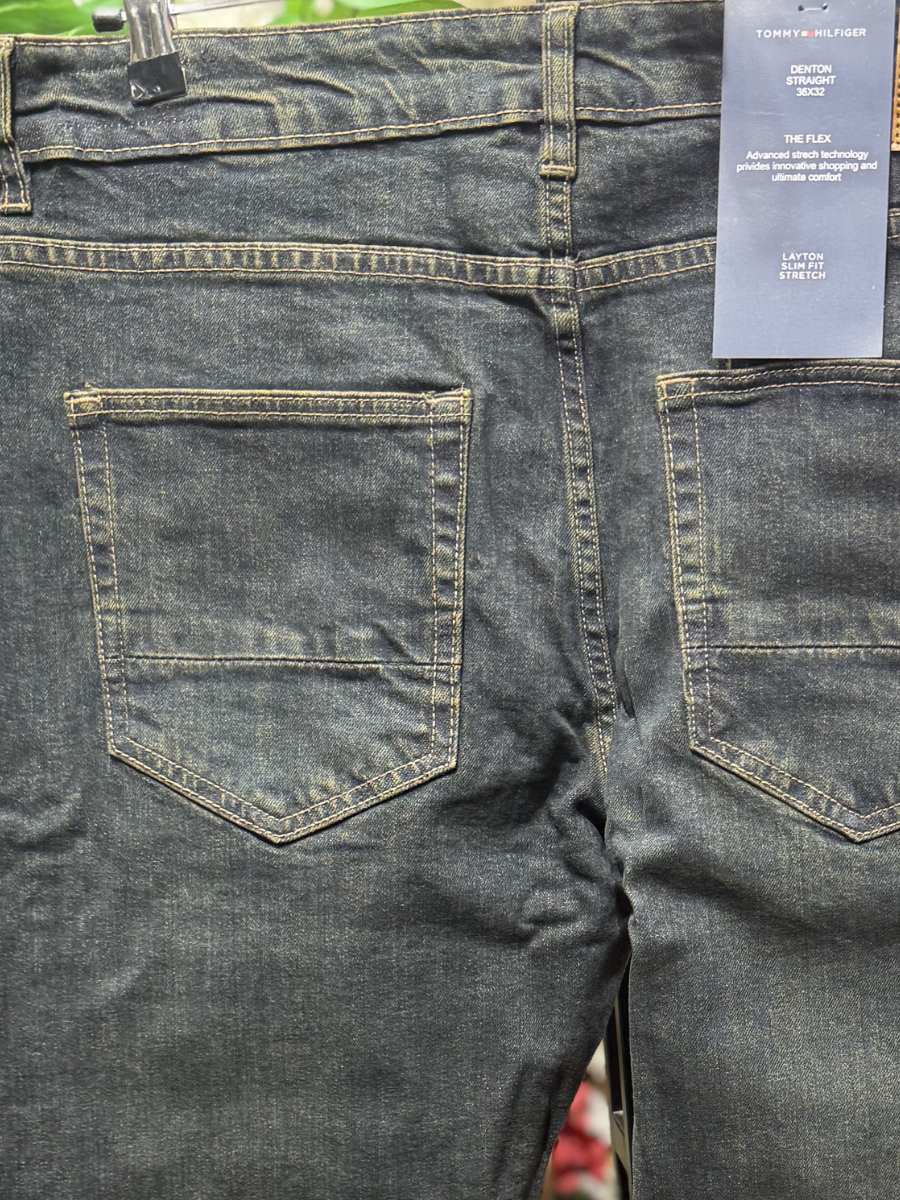 These dark wash denim jeans combine timeless style with everyday comfort. Made from stretch denim fabric, they provide flexibility and ease of movement while keeping a structured, straight-leg shape. The subtle faded finish adds a modern edge, making them easy to pair with casual or smart-casual outfits. Durable stitching and a classic design make these jeans a versatile wardrobe essential.