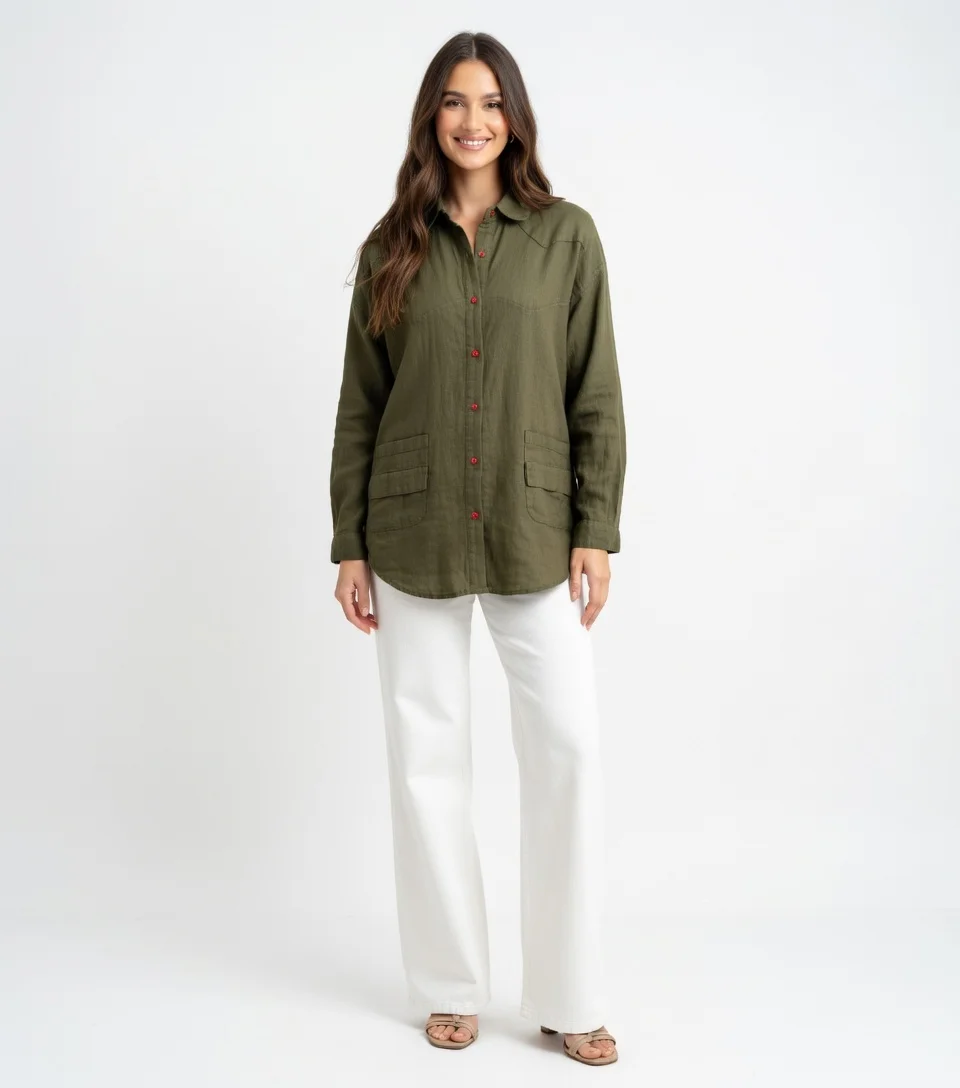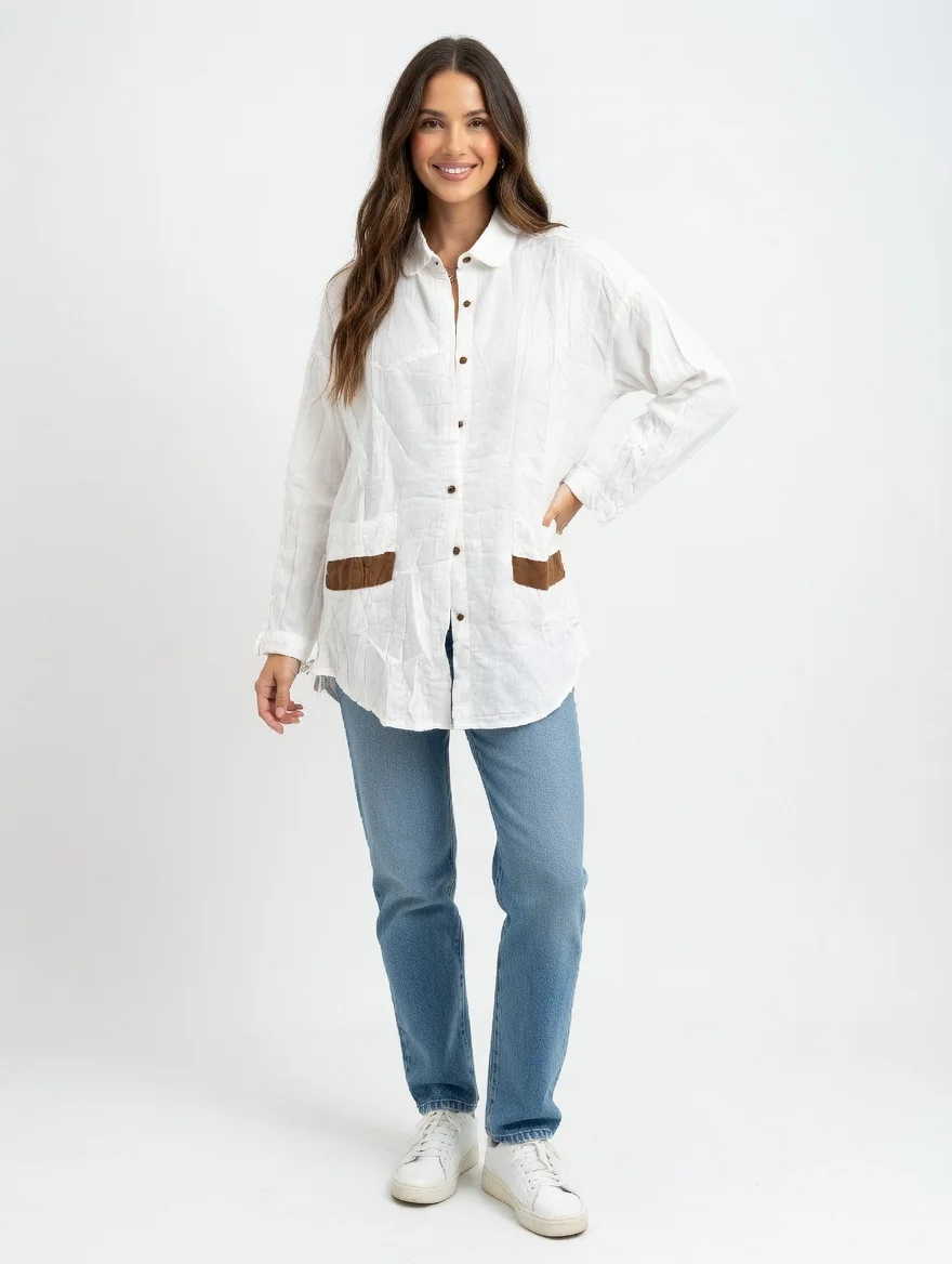 Trendy Ladies Casual Shirt Linen Feel