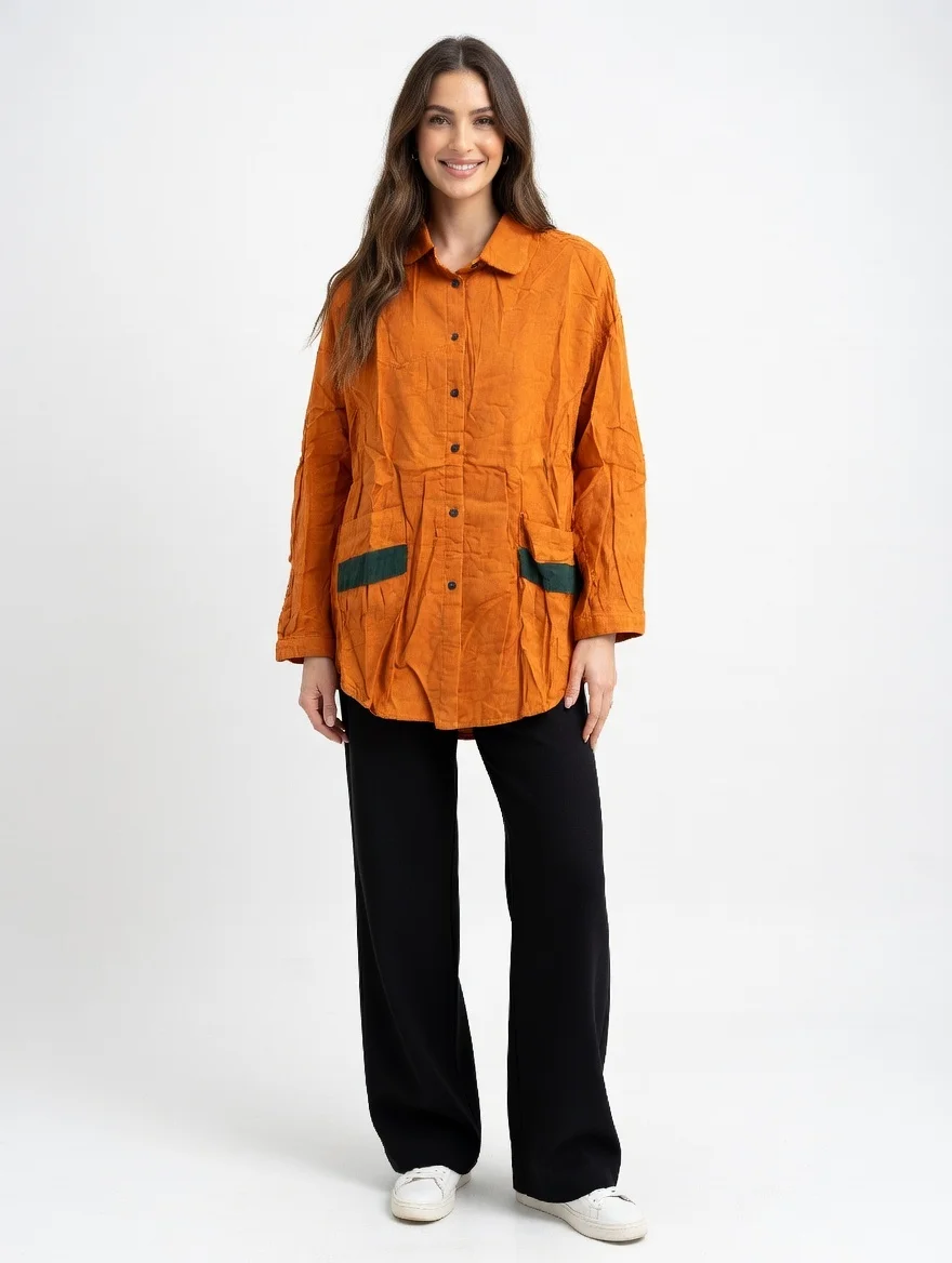 A perfect addition to any wardrobe, this ladies casual shirt delivers both comfort and versatility. Its smooth fabric texture and relaxed fit provide all-day comfort while the modern design keeps your look fresh and stylish.