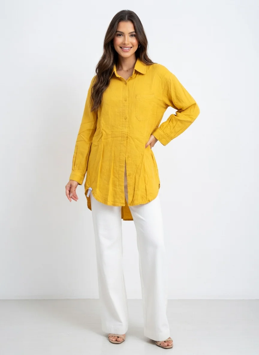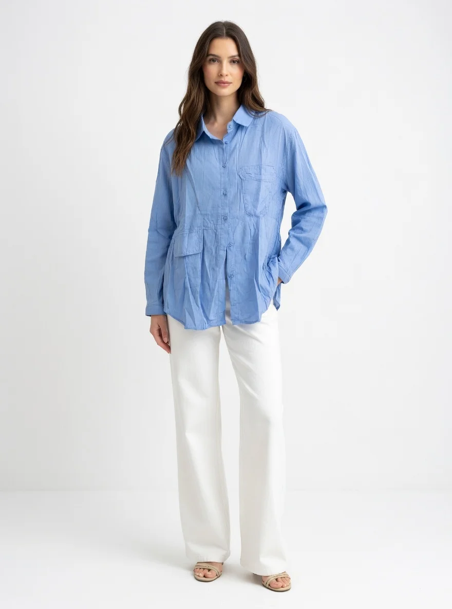 This ladies casual shirt combines modern style with everyday comfort. Crafted from lightweight material, it keeps you feeling fresh and relaxed all day long. The clean stitching, soft texture, and easy fit make it a great choice for work, travel, or weekend wear. Its simple yet elegant design allows you to match it easily with different outfits.